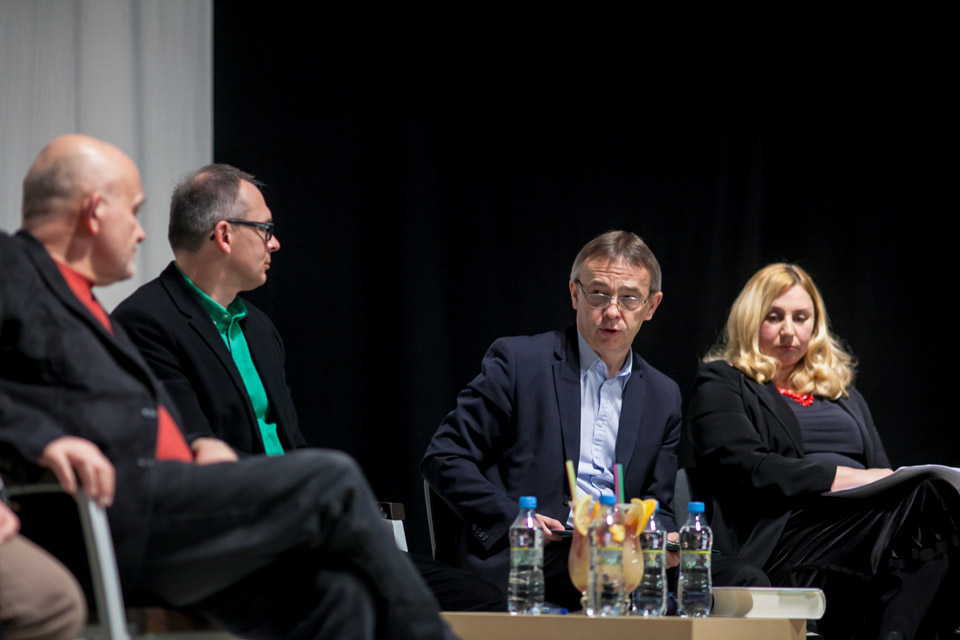 - dyskusja; Adam Ferency, Jacek Kopciński, Zbigniew Majchrowski, Joanna Puzyna-Chojka; fot. Renata Dąbrowska; PC Drama