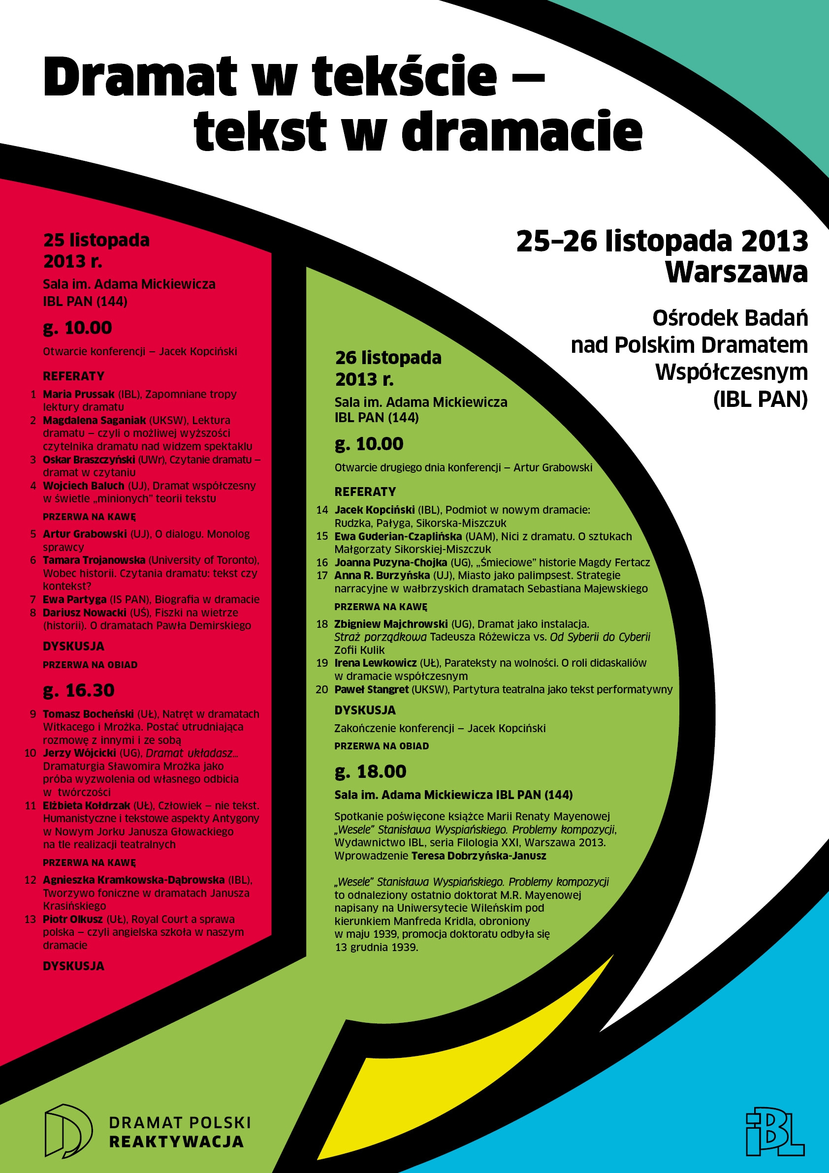8 grudnia 2014 roku w Instytucie Badań Literackich PAN w Warszawie odbyła się konferencja NA GŁOS – ZE SŁUCHU – W WYOBRAŹNI. Dramaturgia radiowa Zbigniewa Herberta, jego rówieśników i następców, podczas której znawcy dramatu i teatru zderzyli ze sobą twórczość i myśl estetyczną pisarzy pokolenia Zbigniewa Herberta i współczesnych. Podczas konferencji wzajemnie uzupełniały się trzy perspektywy: literacka, radiowa i teatralna. Wśród referentów nie zabrakło też praktyków twórczości radiowej.