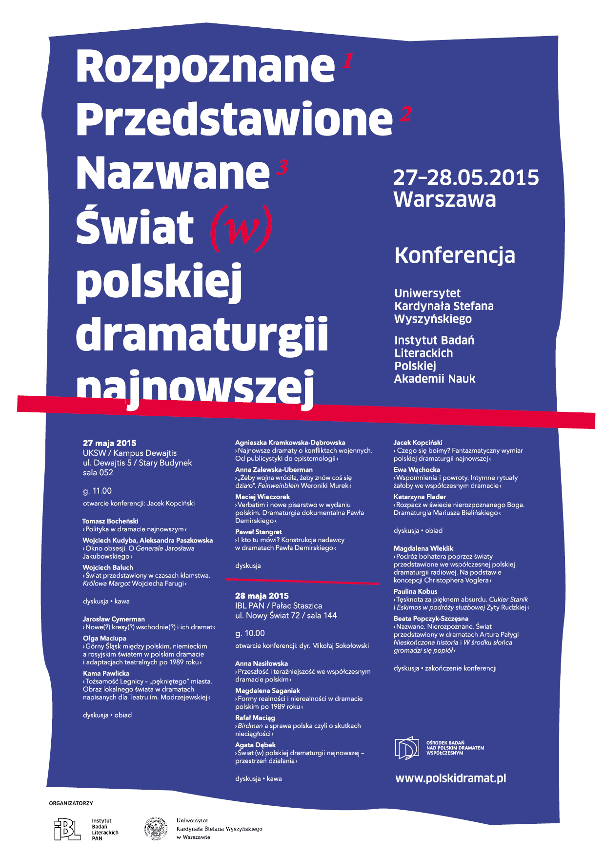 Konferencja odbędzie się w Warszawie w dniach 27-28 maja 2015 r. na Uniwersytecie Kardynała Stefana Wyszyńskiego (ul. Dewajtis 5, Stary Budynek, sala 052, g. 11.00) i w Instytucie Badań Literackich PAN (ul. Nowy Świat 72, Pałac Staszica, s. 144, g. 10.00).